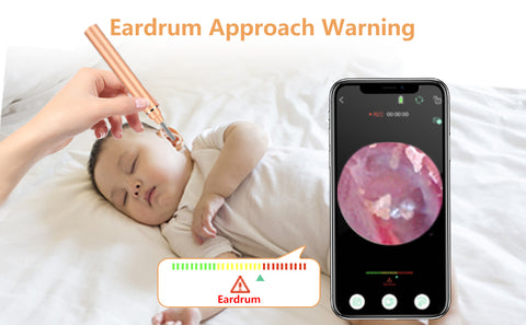 【Using Safer and More Convenience】: The lighted ear wax remover camera featured with the safety distance intelligent tips avoids injury your ear. Warm Tips of "eardrum ⚠" shows on app as long as the tip of earwax camera cleaner too close with your eardrum, so as not to damage the ears. Easy to use, just download the app and connect to the otoscope with wifi, you can start to enjoy earwax removing